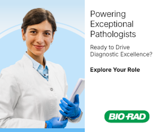 | | | | | | | Sponsored | | Ensure diagnostic precision with Bio-Rad’s quality control series for pathologists. Access exclusive tools and insights to master complex workflows and lead molecular diagnostics excellence. |